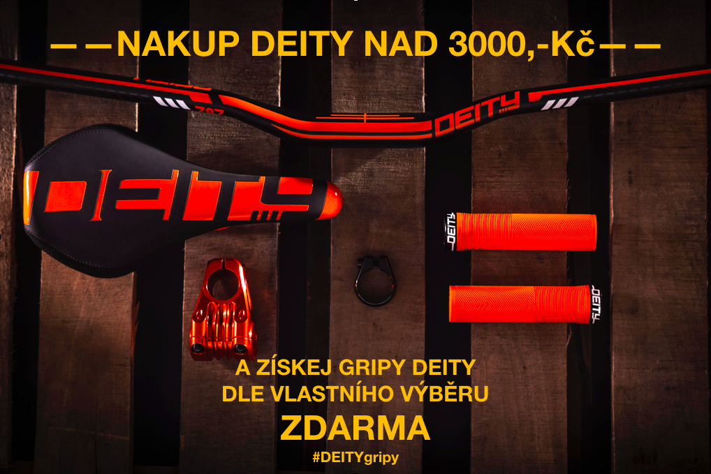 Pro uplatnění akce vložte do nákupního košíku pouze vybrané zboží bez gripů. Při zadávání fakturačních údajů uveďte dole do poznámky AKCE DEITY a napište typ a barvu Vámi vybraných gripů.