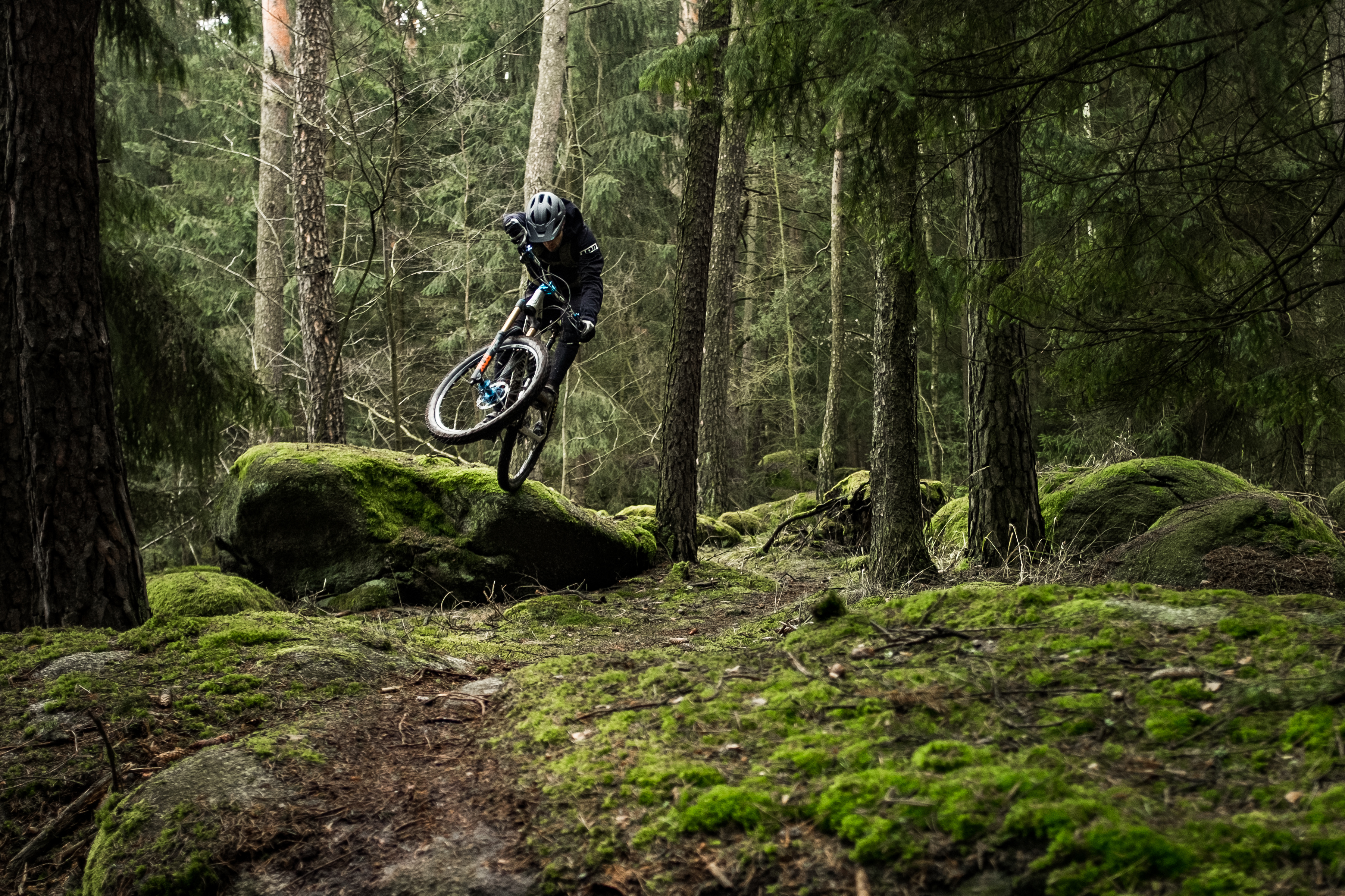 Kokpit nemůže být jiný než komplet DEITY. Řidítka BLACKLABEL 800mm s představcem COPPERHEAD 50mm a gripy KNUCKLEDUSTER. Kombinace, kterou jezdí nejeden týmový DEITY jezdec.