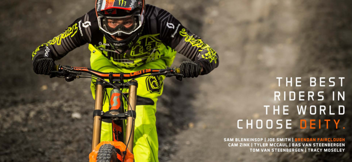 Máme velkou radost, že se nám podařilo získat zastoupení prestižní americké značky DEITY, která se zabývá výrobou velmi kvalitních komponentů. Ať už se jedná o řidítka, představce, pedály, gripy či sedla, produkty DEITY si našly mezi bikery z celého světa velkou oblibu a důvěru. Není tak divu, že tyto komponenty můžete běžně vidět na závodech světového poháru ve sjezdu, při enduro či slopestyle mezinárodních akcích. Mezi jezdce, kteří jsou vybaveni komponenty DEITY, patří hvězdy jako Brendan Fairclough, Cam Zink, Tracy Moseley a další.