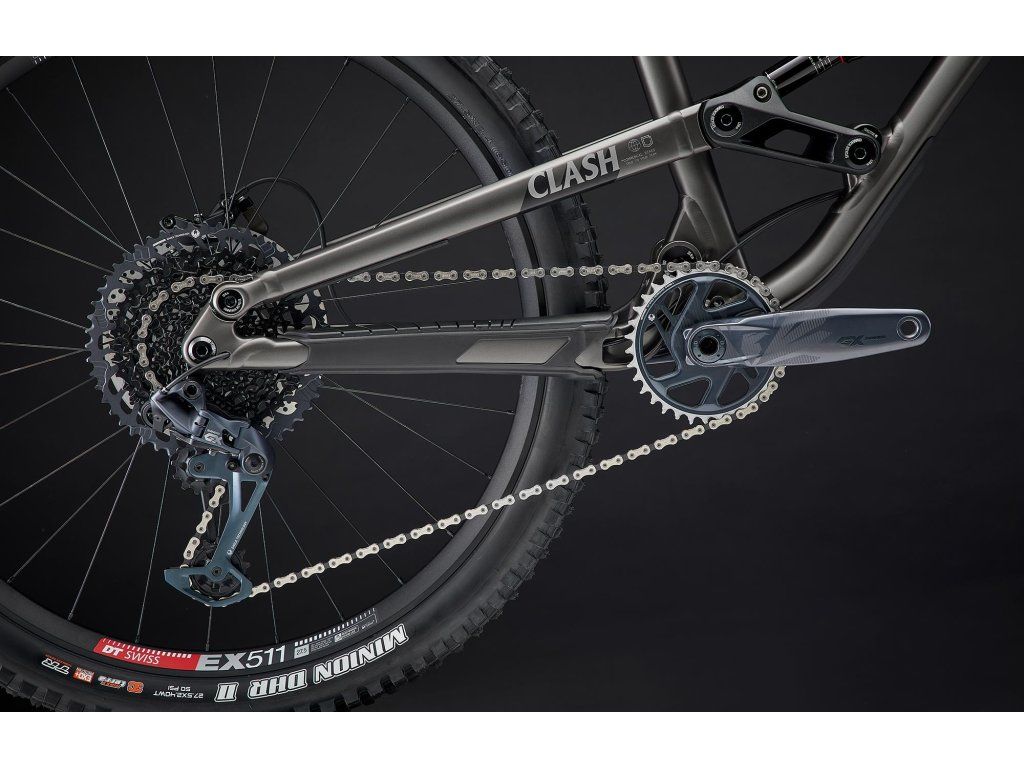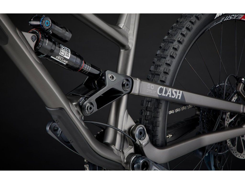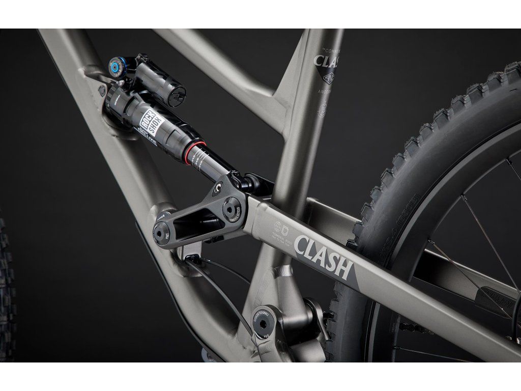 27,5" kola, velké zdvihy (180/170 mm), agresivní geometrie a kinematika... Clash je zkrátka kolo "na všechno" – bikeparky, enduro, velké skoky nebo dlouhé vyjížďky. Geometrie byla nejvyšším předmětem pozornosti a došlo k menším změnám, jako prodloužení horní rámové trubky a přímější úhel sedlové trubky. Delší přední trojúhelník poskytuje stabilitu ve vyšších rychlostech a krátký představec udržuje manévrovatelnost a hravost během pomalejších úseků. Kinematické nastavení v podobě Flip Chipu u tlumiče vám umožní si vybrat mezi dvěmi nastaveními. Citlivý režim (SENSITIVE) pro DH/Freeride použití, když potřebujete pohodlí a přilnavost & Dynamický režim (DYNAMIC) je ideální pro plynulejší tratě, skoky a větší živost.