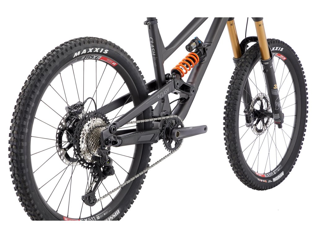 27,5" kola, velké zdvihy (180/170 mm), agresivní geometrie a kinematika... Clash je zkrátka kolo "na všechno" – bikeparky, enduro, velké skoky nebo dlouhé vyjížďky. Geometrie byla nejvyšším předmětem pozornosti a došlo k menším změnám, jako prodloužení horní rámové trubky a přímější úhel sedlové trubky. Delší přední trojúhelník poskytuje stabilitu ve vyšších rychlostech a krátký představec udržuje manévrovatelnost a hravost během pomalejších úseků. Kinematické nastavení v podobě Flip Chipu u tlumiče vám umožní si vybrat mezi dvěmi nastaveními. Citlivý režim (SENSITIVE) pro DH/Freeride použití, když potřebujete pohodlí a přilnavost & Dynamický režim (DYNAMIC) je ideální pro plynulejší tratě, skoky a větší živost.