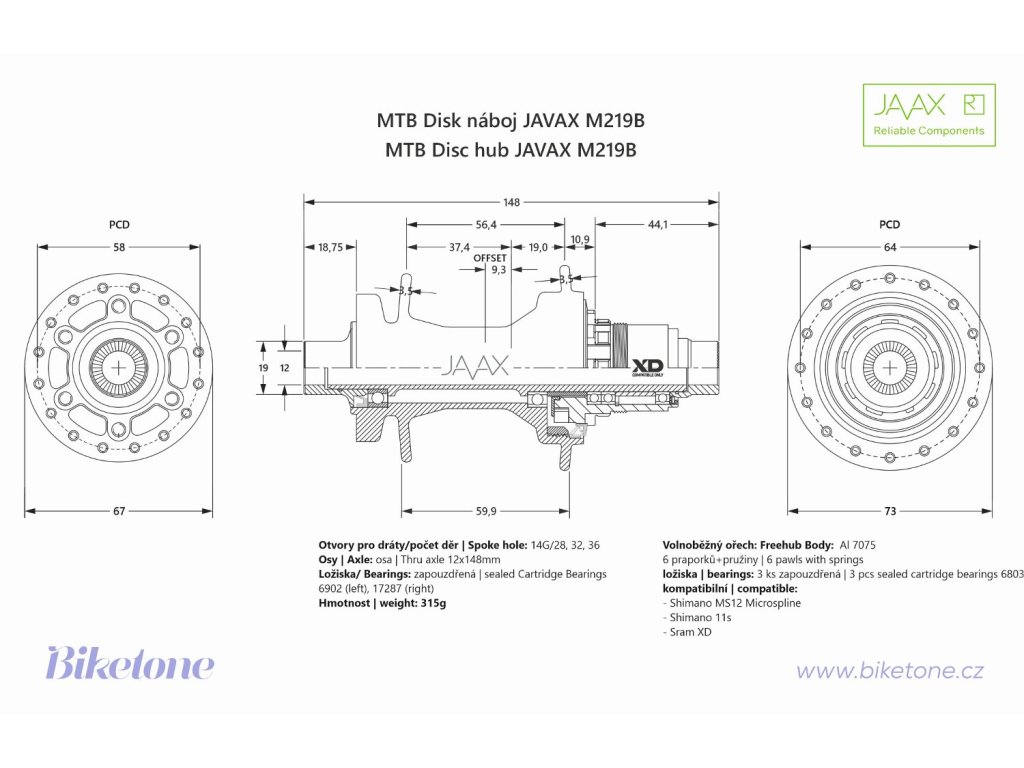 Javax zadní náboj M219B, černý, 32 děr