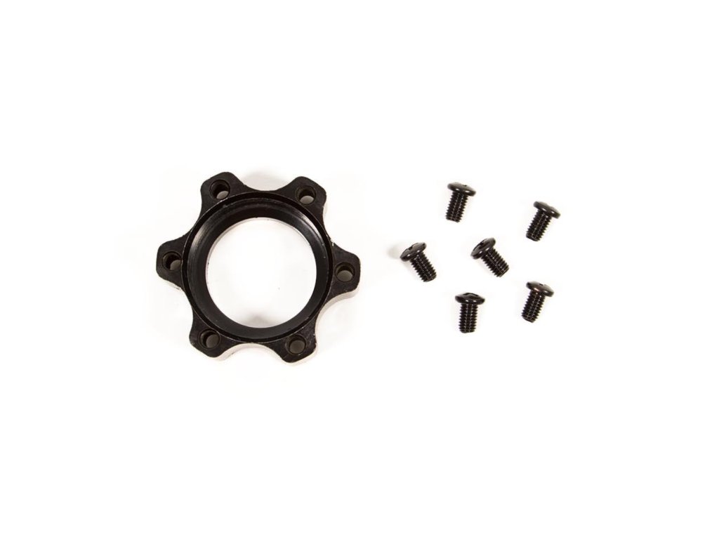 Hliníkový adaptér pro montáž brzdového kotouče na zadní náboj.